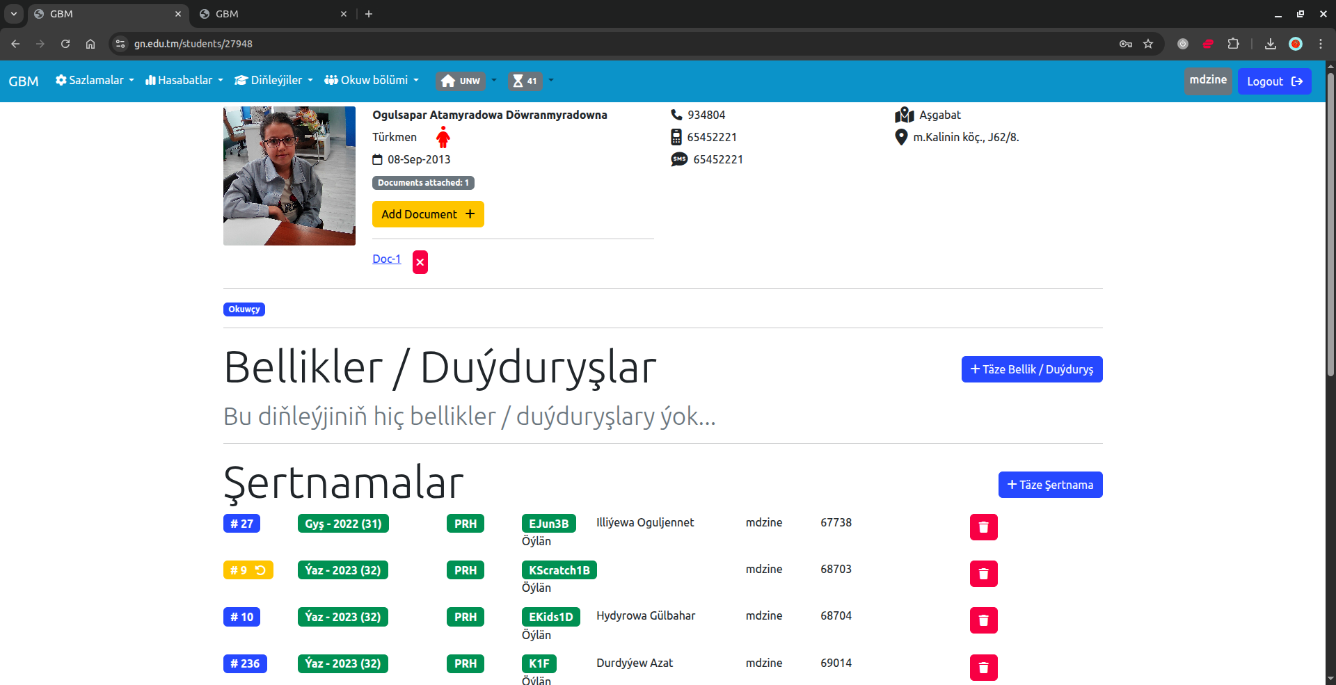 An education platform, for the largest education center in Turkmenistan "Gujurly Bilim Merkezi".