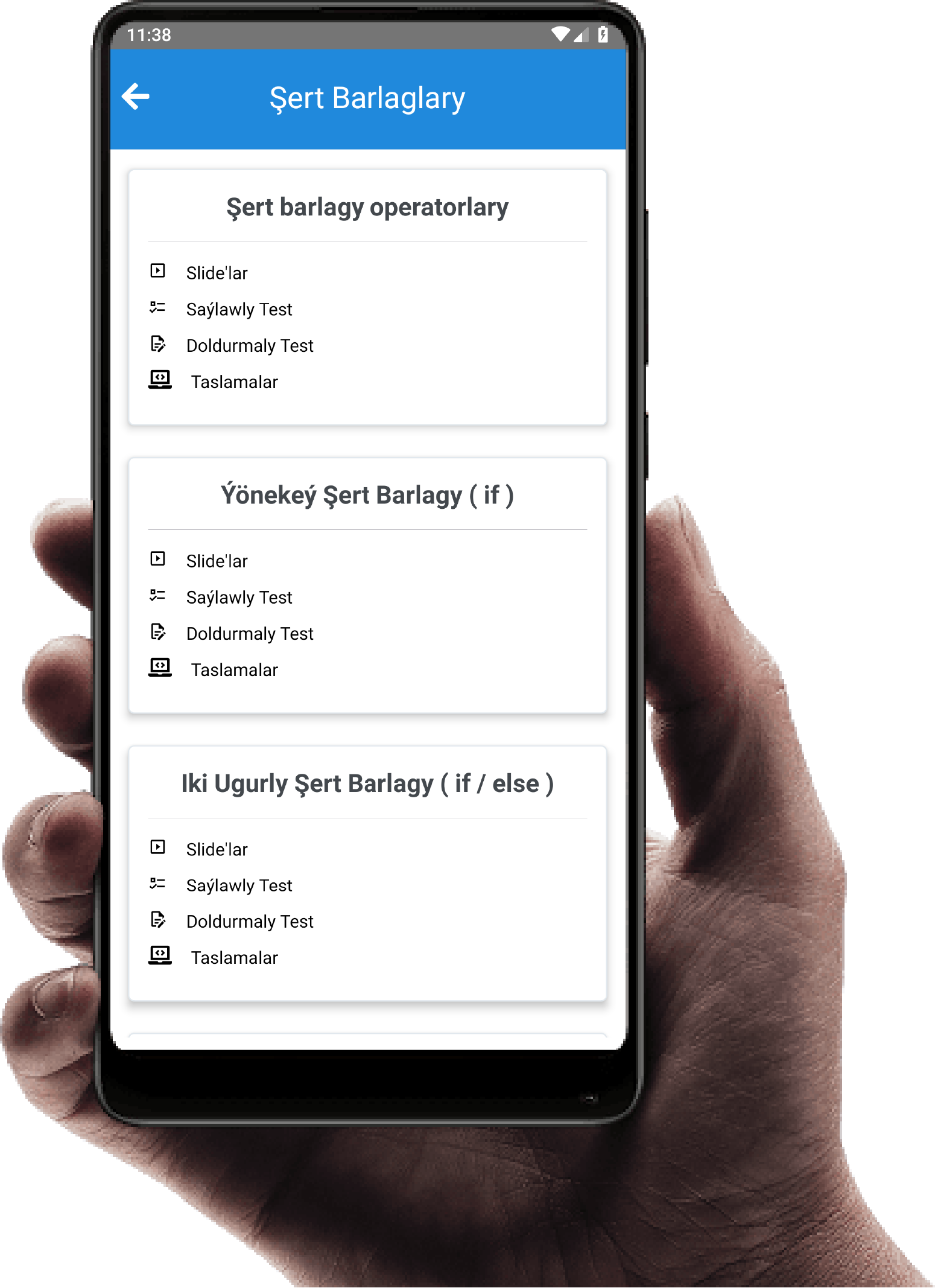 An android mobile app for learning programming languages and frameworks, in Turkmen language. It is a project born out of scarcity of programming resources in Turkmen language.
